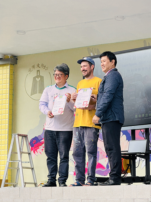 此次壁畫亦融入校徽與國際化視野,使作品成為校園美學新亮點,校長吳家瑞表示,這場跨國藝術合作不僅讓學生看見世界,也讓世界走進校園;未來將持續深化與比利時及其他國際教育單位合作,讓藝術、文化與教育在市大附小不斷創造新的可能。