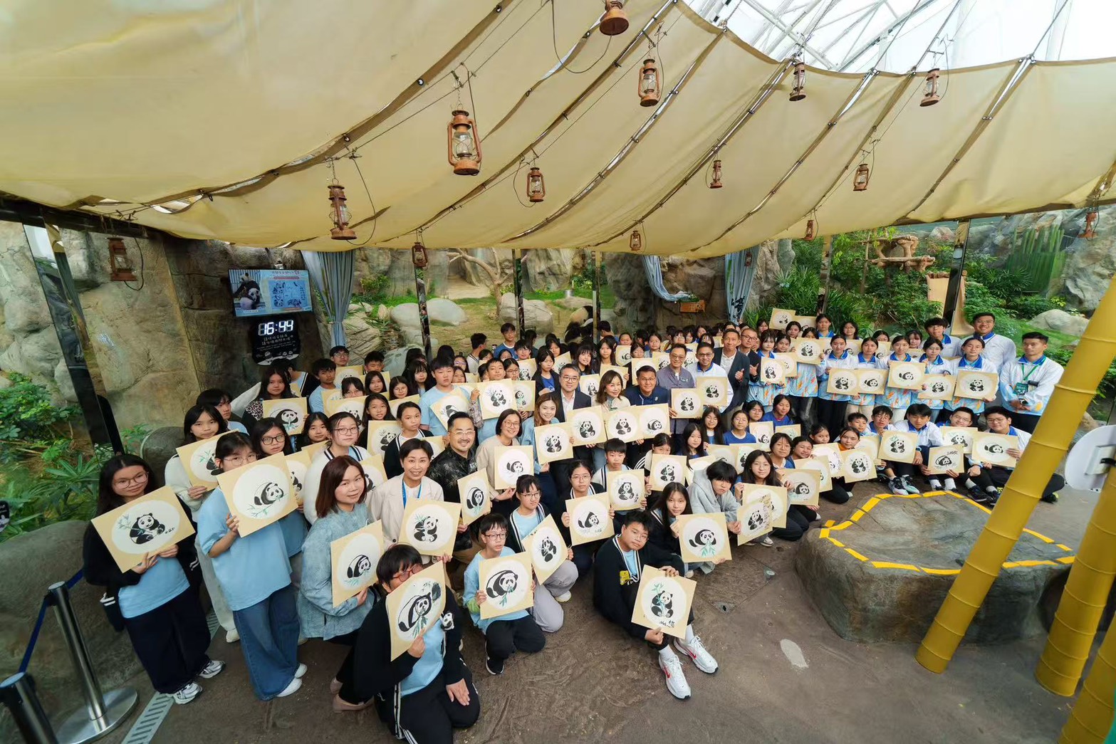 活動現場,黃湘詅亦與青少年學員共同完成 三幅大型大熊貓水墨畫作品,描繪「加加」與「得得」的可愛姿態,這些作品亦將於四月展覽中展出,象徵藝術教育與保育精神的延續。 ⸻