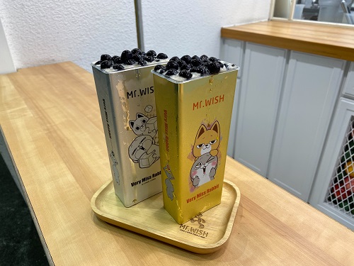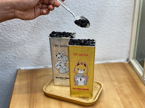 今年夏天,Mr. Wish 更聯手 LINE 貼圖人氣冠軍「好想兔」推出八款造型罐,以跳脫市場的方形設計搭配萌趣插畫,立刻引爆搶購潮。許多粉絲紛紛把造型罐當作環保隨行杯使用,或將其作為小物收納罐,兼具收藏性與實用性。此次「免費加波霸珍珠」活動,正是粉絲們再度蒐藏造型罐的最佳時機,限時限量,錯過就不再。