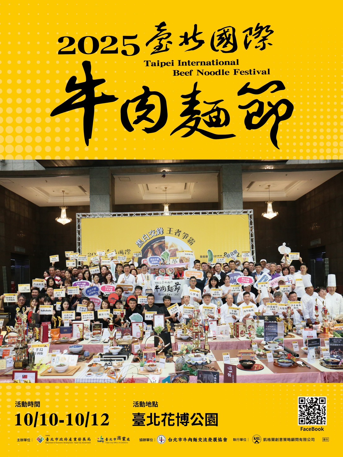 2025臺北國際牛肉麵節於10月10日至10月12日在臺北花博公園長廊廣場盛大舉行,相關活動訊息請至台北市牛肉麵交流發展協會粉絲團(https://www.facebook.com/TPEBEEFNOODLESOUP/)