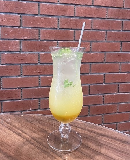 圖 /香菜鳳梨氣泡飲以鳳梨的酸甜果香結合香菜微辛香氣鄰近苑裡老街 步行探訪紅磚風華與庶民風景