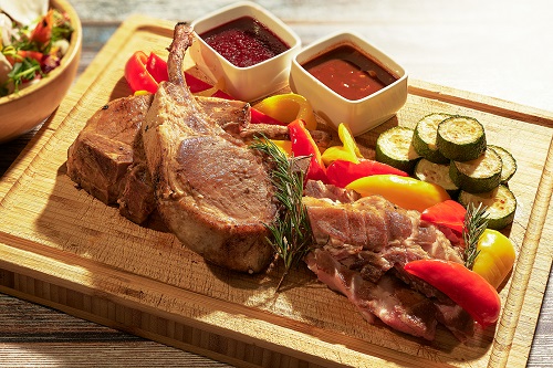 圖 /鉑麗安美墨料理的「低溫慢烤戰斧豬排」以肉香、煙燻香與酸甜醬汁勾勒層次。