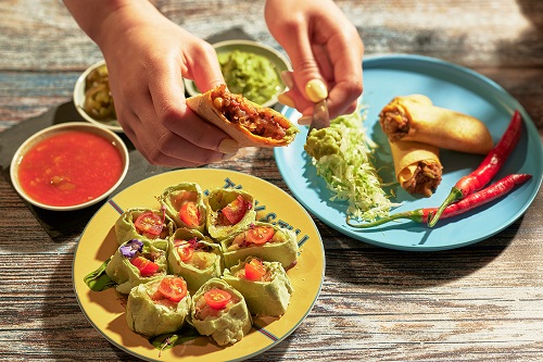 圖 /鉑麗安美墨料理的「安吉拉牛肉餅」濃郁口感;「墨西哥海鮮卷」則酸香帶有清爽感。