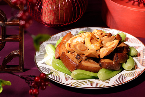 此次年菜由礁溪寒沐酒店行政副主廚陳恆潔與寒沐中餐廳李宜政主廚聯手設計,主廚首推「馬躍迎春年菜組」8,888元,內容包含寒沐賀歲五福拼、極品鮑梅干扣肉、漁港海鮮西魯肉、荷葉紅蟳蒸米糕,以及回甘樹籽龍虎斑,整桌佳餚,除夕輕鬆上菜團圓享樂。亦可選擇六道星級招牌料理,首推寒沐中餐廳經典美味「相思木燒鵝三吃」4,380元,集結黃金片皮鵝捲餅、斬件燒鵝腿與當歸枸杞燉鵝盅,三種吃法一次享有。「極品鮑梅干扣肉」2,980元,肉汁鮮甜與梅菜鹹香相互交織,加入彈牙的極品鮑,增添奢華口感。