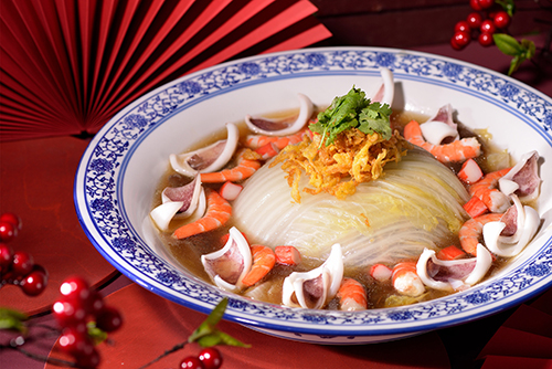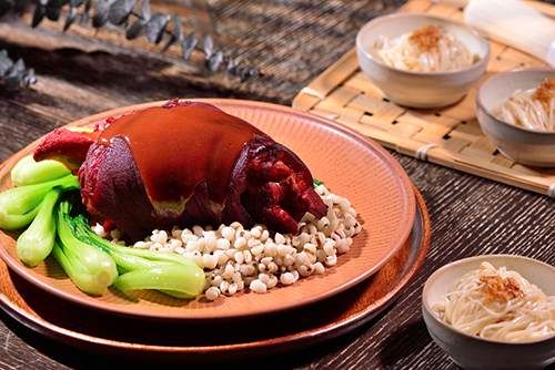 圍爐必備開胃冷盤「寒沐賀春五福拼」2,380元,精選烏魚子、老醋海蜇頭、蔥香油雞腿、五味鮮冰卷與蘭陽金棗餅。以及「荷葉紅蟳蒸米糕」1,580元,淡淡荷葉香氣與新鮮紅蟳,甘甜鮮嫩,蟹黃豐厚。經典宜蘭古早味菜色「漁港海鮮西魯肉」1,380元,以白菜、豬肉絲、香菇等多樣食材熬煮,搭配蝦仁、透抽及海參等鮮味,清爽鮮甜。最後為限量供應、象徵吉祥團圓的「紅麴薏仁豬腳」880元,以紅麴入味,豬腳膠質豐厚、肉質軟嫩,搭配薏仁的清香與綿密口感,入口溫潤、滋味醇厚。六款佳餚於2026年1月20日預訂還可享早鳥9折優惠。