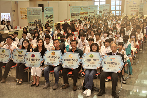成果展靜態展部分,鷺江國中結合音樂、家政與表演藝術創造真實語境,強化學生英語表達;樟樹國際實中以護理與國際交流為主題,引導學生在模擬實作與文化互動中自信開口說英語;淡水國中與二重國中透過跨國視訊課程,培養學生跨文化溝通能力;青山國中小則導入5G與AR/VR,結合外師資源以莎士比亞劇場打造沉浸式英語學習體驗,深化語言學習成效。