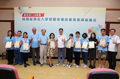 (台灣TB新聞網/資深記者劉志成)對許多自閉症孩童的家庭來說,進入小學不只是學習的開始,更是一段全新生活的挑戰。為了讓孩子少一分不安,多一份勇氣,新北市教育局自109學年度起攜手財團法人中華民國自閉症基金會,為升小一的星兒打造免費暑期適應課程。今年擴大辦理兩梯次,共計四個班的80名星兒分在三重集美國小與板橋後埔國小同步展開「先修」小學生活。今(15)日的結業式上,副市長劉和然前往後埔國小頒發結業證書,鼓勵孩子們帶著笑容、自信迎向新學期。