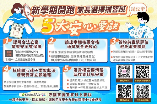 補教學習選立案 新北公布5大安心要訣守護孩子安全學習