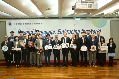 記者會中,學術交流基金會與美方大學代表說明試辦計畫內容,四所雙語全校型標竿大學──國立中山大學、國立成功大學、國立台灣大學及國立台灣師範大學──亦分享雙語計畫推動成果;學生則談到 EMI 課程如何提升其英文表達、跨文化溝通與國際合作能力,使其更具信心規劃交換、申請海外研究所或未來就業,展現 EMI 對學生行動力與生涯發展的實質助益。