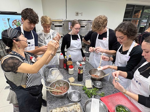 (台灣TB新聞網/資深記者劉志成)雖然已是12月初了,該是又寒又冷的天氣但仍是舒服的秋天氣息,今天一點微涼的氣溫,讓人感到非常舒服!正適合享受「紅油炒手」的麻香好滋味。本校與台北市101扶輪社 3522地區合作接待國際交換學生計畫已10多年了,每一年六月捨不得地送走孩子們回國,暑假尾聲又很快地接來一批新面孔,孩子們雖來自不同國家,都是幸福喬治的孩子,國際交換學生多數來自西班牙、義大利、德國、斯洛伐克、法國、比利時、加拿大、巴西等歐、美及中南美國家。今年特別為國際交換學生推出的文化體驗課程「喬治獨家紅油炒手」,從微麻香辣到又麻又嗆辣,好過癮!