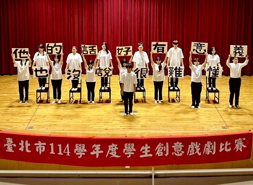 創意戲劇比賽旨在推動藝術教育、鼓勵學生以創意方式展現故事、情感與團隊合作。育達師生投入大量心力,使作品具備完整戲劇語言與舞台美感。學生將課堂所學化為真實舞台表現,並在比賽中融合情感、想像力與默契,展現高度的專業度,也讓評審看見高中生在即興創作與戲劇詮釋上的潛力。