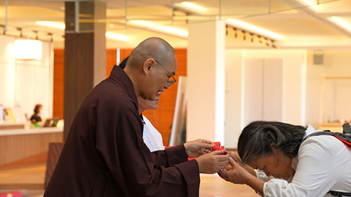 心道法師進一步解釋「德性絕非空談,須透過日常實踐積累善行。」具體實踐分為三個層次:第一,從破除執著妄念做起,延續蛇年「脫殼自在」的精神,放下過度算計與猜疑,以真誠面對他人,重建信任;第二,主動化解衝突,把彼此當成生命共同體,讓互助成為良性循環;第三,將助人當成快樂來源,從「四給」給人希望、給人方便、給人歡喜、給人信心,讓利他成為習慣。