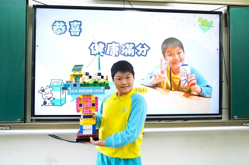 頒發Switch獎項時,鄧副局長表示,希望這份禮物能鼓勵王同學在遊戲中結合運動,建立規律活動習慣,讓健康體能成為成長歷程的一部分。隨後頒贈專屬訂製的智高積木「200萬鮮奶紀念獎盃」,其設計融入光電意象,傳達「良好環境孕育優質鮮奶」的概念,也鼓勵學校可將此轉化為教學或展示素材,引導學生連結科技應用、環境保護與自然共生,讓永續思維融入校園日常。