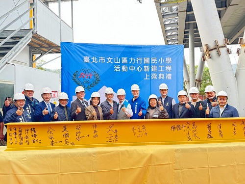 (台灣TB新聞網/資深記者劉志成)台北市文山區力行國民小學活動中心新建工程於115年1月19日上午10時舉行上梁典禮,由台北市政府工務局李文芳總工程司擔任主典,教育局黃一正專門委員及各界貴賓陪典,見證台北市文山區力行國民小學活動中心新建工程達成階段性目標,即將邁入新的里程碑!
