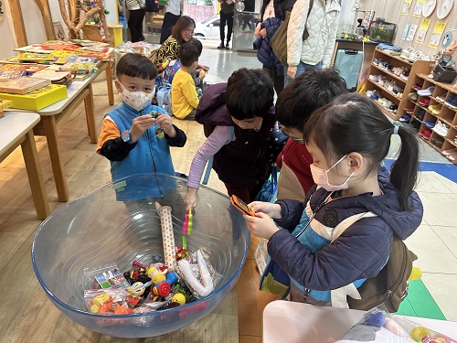 活動過程中老師們特別於班級裡引導孩子學習分辨「需要」與「想要」,每位孩子僅能挑選一件真正需要的舊物,孩子們在挑選時神情專注,臉上充滿期待與喜悅,讓師長們看見孩子內在幸福力的展現。