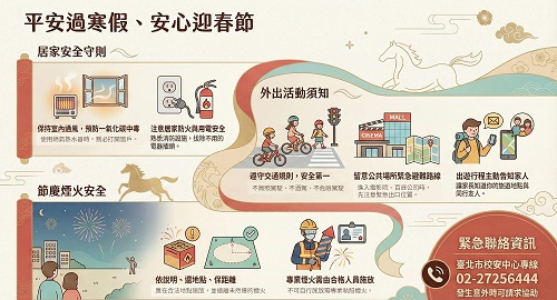 寒假及春節連續假期,北市教育局提醒師生留意自身安全