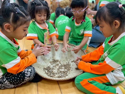 圖 /屏東縣長榮百合國小附幼幼兒體驗從小米穗搓下種子- 地方新聞-02-11- 從動物照護到半導體科技-台北女性科學日打造女