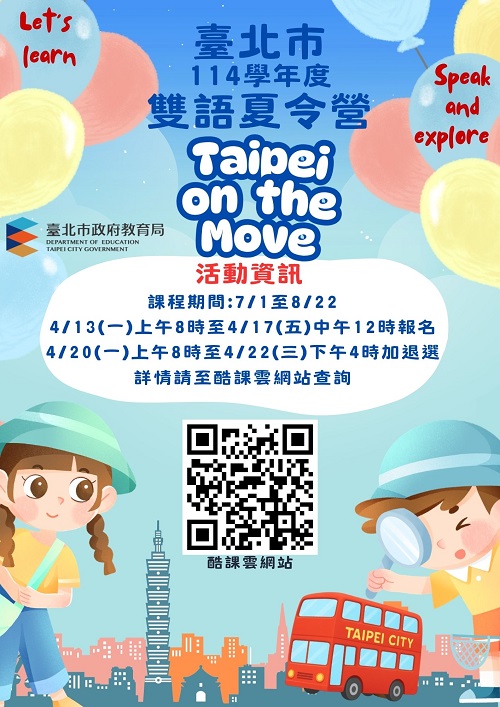 - 綜合新聞-04-09- 從校園走進城市!台北市雙語夏令營7月啟動 「