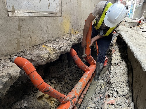 水利局長宋德仁說明,新店區污水下水道系統自民國92年推動,分兩期建設:第一期由內政部國土管理署代辦,已於民國102年竣工;第二期由國土署完成第一至五標後,新北市府接續執行。宋德仁指出,過去住戶廚房、浴室污水直接排入後巷水溝,導致異味、蚊蟲孳生與積水問題,不僅影響環境衛生,更使防火通道雜亂難行。未來污水接管後,生活廢水將直接導入下水道系統,後巷恢復整潔通風,徹底改善居住品質。