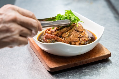 客家飲食文化中,醃漬、發酵與保存技藝不僅是風味的核心,更展現與土地共生的勤儉精神。此次合作中,新生代品牌「昔日大飯店」主理人王士瑋以洋蔥等香料調製「客家TABASCO」,搭配酥脆唐揚雞,碰撞出傳統與當代餐酒文化的新火花;老字號「來得福客家餐廳」則堅守經典,端出苗栗公館原鄉醃製的梅干扣肉與福菜肉片湯,重現圍爐滋味,訴說客家人珍惜食材的智慧。