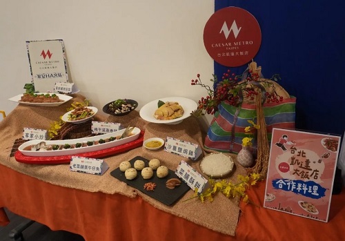 首屆台北客家美食節與四家品牌合作,展現客家風味的新創可能: •台北凱達大飯店於 8月13日–10月30日 推出「家宴 HA客味」Hakka Delights at Jia Yan主題套餐,由行政主廚戴于益領軍,端出六道經典菜:沙薑鹽焗雞、客家釀燒豆腐、客家小炒、梅干菜蒸香茄、老菜脯蒸午仔魚、菜脯酥餅,重新詮釋「鹹、香、肥」的客家菜精神,以傳統融合創新的手法,展現出客家料理的新風貌,讓饕客一次嚐遍經典客家好味道! •台鐵便當預計9月26日推出「芋香油飯便當」,主菜搭配酸菜鴨腿、鹹冬瓜鱸魚,佐以金桔,傳遞客庄滋味。 •鮮芋仙研發「仙草風味爆米花」,以傳統甜品元素結合創意零食,酥脆香濃。 •台北福華大飯店設計「客家甜點禮盒」,內含擂茶燒果子蛋糕、金棗開心果塔等,展現精緻西點融合傳統風味。 四家品牌皆於記者會現場設攤展示,傳遞企業投入客家文化推廣的心意與創意。
