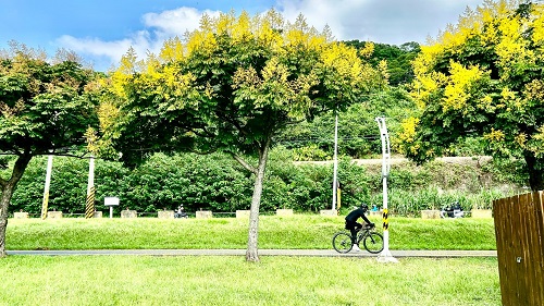 (台灣TB新聞網/記者孫曜樟)隨著秋季氣候轉變,新北市河濱區域的台灣欒樹正大量綻放金黃色花簇,形成鮮明景觀。新北市政府高灘地工程管理處處長黃裕斌指出,土城媽祖田河濱公園、樹林山佳河濱公園及沐心池周邊、八里左岸河濱公園為主要賞花地點,因季節變化促使開花,市民可騎單車悠遊賞景,並結合八里城市沙雕展活動,體驗秋日河濱風光。