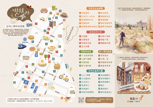 為鼓勵民眾親自走訪在地特約店家,地圖特別設計「集章處」。遊客只要帶著地圖前往合作店家消費或參觀,集滿三個不同店家的印章,即可回到「啡常美好」咖啡館,享受飲品買一送一的專屬優惠(限平日使用,兌換詳情依現場公告為準)。官方臉書開放免費下載 「啡常美好」店內供免費索取