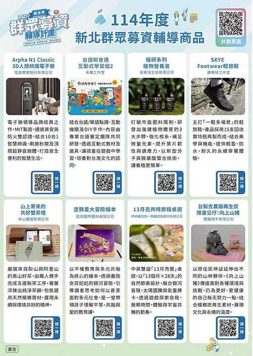 經發局說明,許多團隊在募資階段結束後,持續拓展實體與線上通路、參與國際展會、或進軍海外市場,顯示輔導計畫已形成長期推動品牌升級的力量。計畫不僅加速產品上市流程,更強化新北創新生態系的韌性與競爭力。為讓民眾深入了解團隊從創意發想到產品成形的過程,市府已同步於YouTube平台發布今年成果影片「眾力成就.創新點亮生活」,邀請市民透過影片認識這些創意產品,共同支持在地品牌發展。