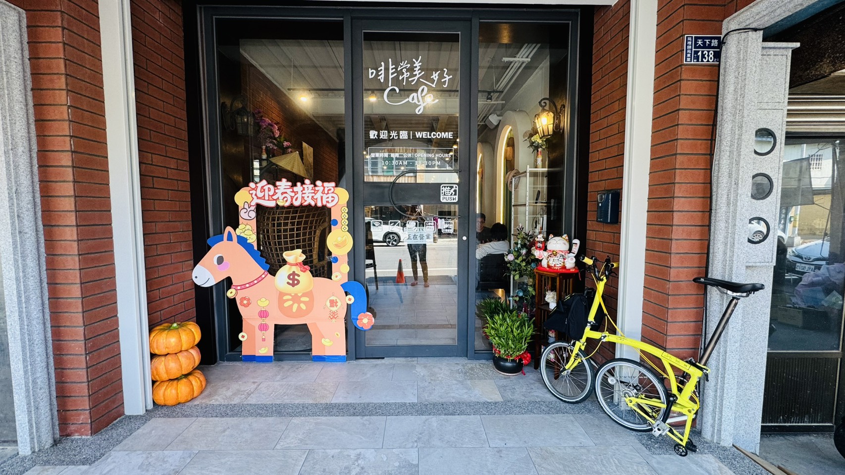 慈和宮本年度首次攜手於苑裡建立文青餐飲品牌的「啡常美好」咖啡館,於2/25-28打卡啡常美好,並標記慈和宮任一活動,即送一張啡常美好50元折抵券,身為在地人的「啡常美好」營運長陳小姐於活動日更加碼提供飲品給踩街民眾,特別在店門口設置飲品區,當日與啡常美好門口的「迎春接福」馬仔拍照打卡,標記1個朋友並寫下祝福吉祥話,便可自取一杯涼飲。