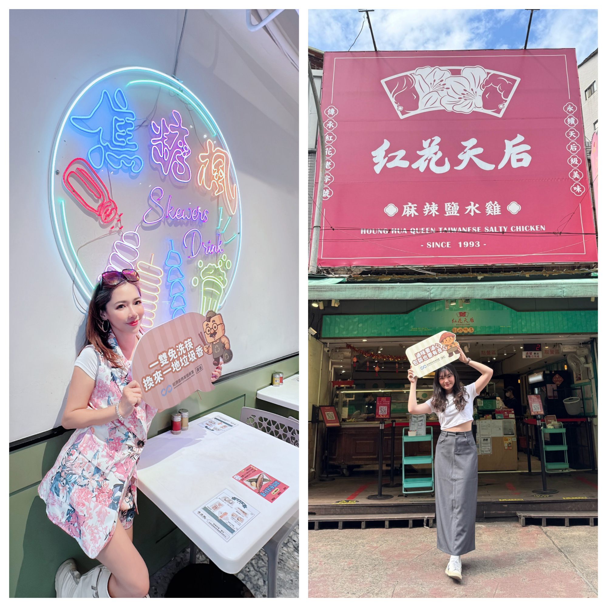 臨江夜市不僅是全臺女性最愛逛的購物天堂,更是美食家朝聖寶地,夜市裡匯聚眾多米其林必比登推薦美食,如雅口天香臭豆腐、梁記滷味、御品元冰火湯圓等,還有駱記小炒、格登炸雞、通化肉圓、胡家米粉湯等排隊名店,各國美食如日式鐵板燒、義大利手工甜點也應有盡有。本次特別設計一系列創意「環保手拿牌」,將夜市常見塑膠容器搭配詼諧口號,不僅能拍照打卡,更能輕鬆學習正確資源回收知識,讓環保宣導變得生動又有趣。