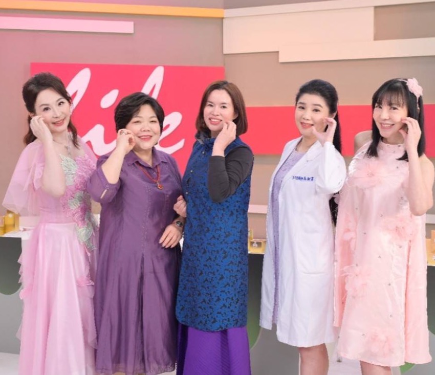 紫玉金砂創辦人普洱茶女王黃錦鶯投入美業,帶領團隊錄製健康最前線(照片提供:紫玉金砂黃錦鶯、健康最前線)