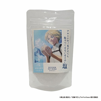本次推出由全新繪製插圖打造的周邊商品,艾連、米卡莎、里維、艾爾文等角色將以徽章與壓克力立牌的形式登場。此外,還有「里維兵長的台詞便條紙」與「阿爾敏的『一輩子都用不完的』鹽」等充滿粉絲必看小彩蛋的商品在內,合計共販售36款原創聯名周邊商品。